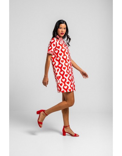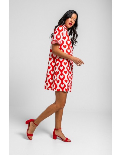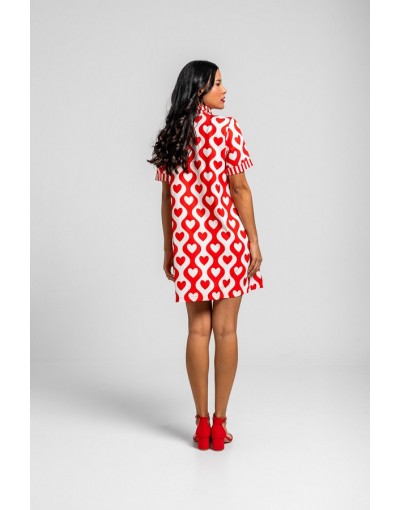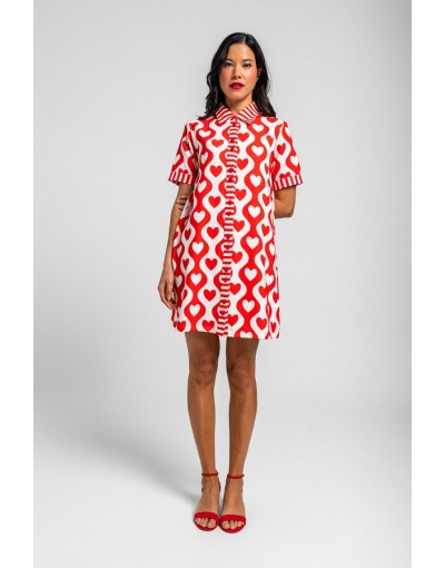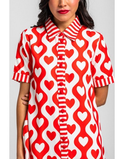 More amor por favor: por que hace falta más amor en el mundo - Vestido camisero corto lady de corazones y ondas blanco y rojo: Vestido de silueta recta con botonadura completa al frente. Cuenta con cuello de camisa, manga corta con vuelta y un corte limpio - 100% Poliéster. - Lavar a máquina en agua fría. No usar blanqueador. No usar secadora. Secar colgado a la sombra. Planchado a temperatura baja, por debajo de 100 ºC. Planchar del revés. No dejar la plancha parada sobre la prenda. Lavar con colores similares.