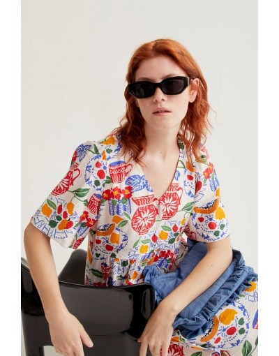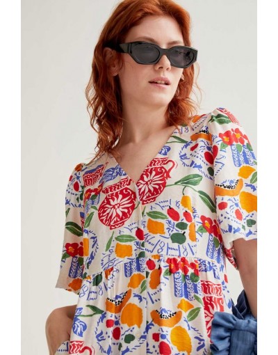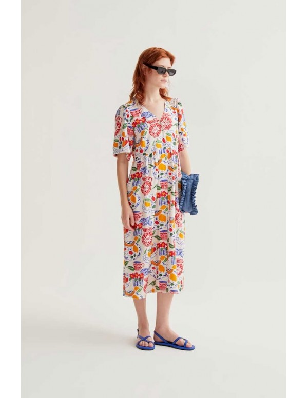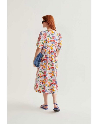 Vestido Camisero Blanco Estampado Midi Compañía Fantástica