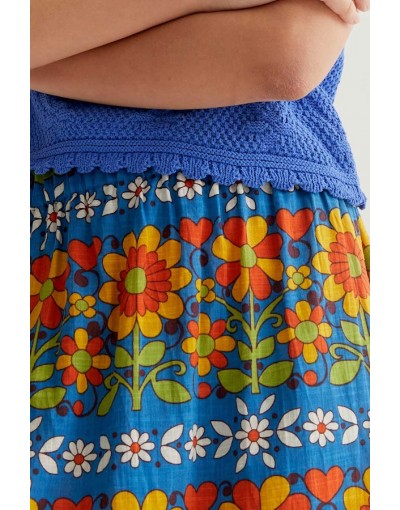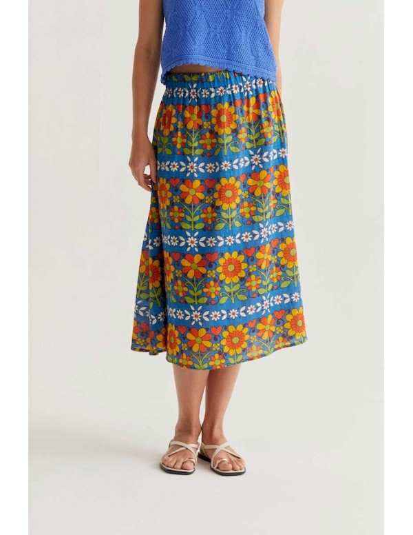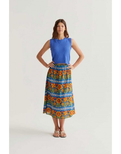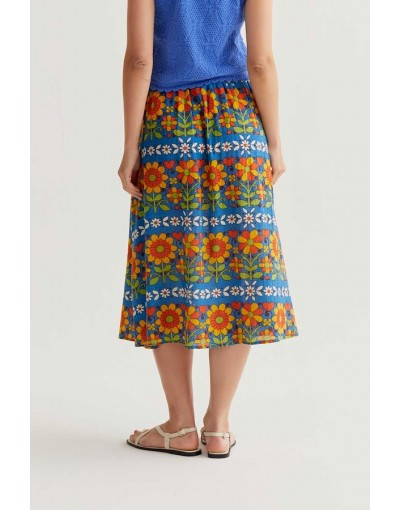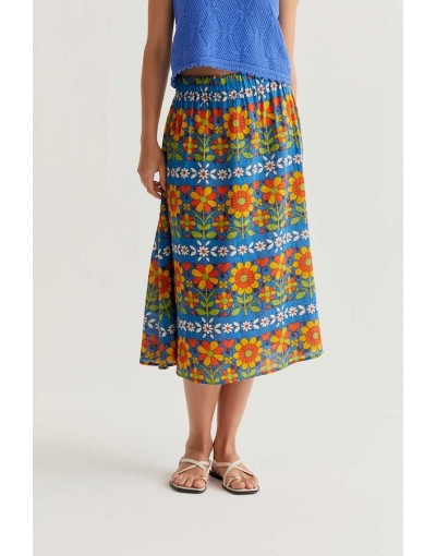Falda Midi Azul Estampado Flores Compañía Fantástica