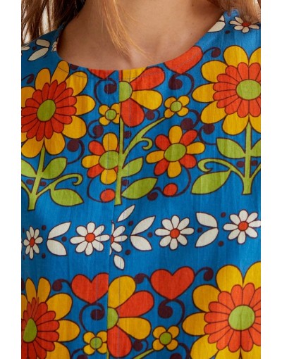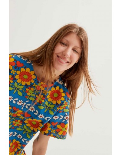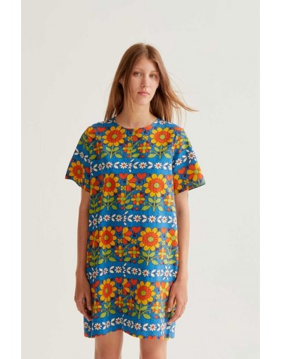 Vestido Corto Azul Estampado Flores Compañía Fantástica