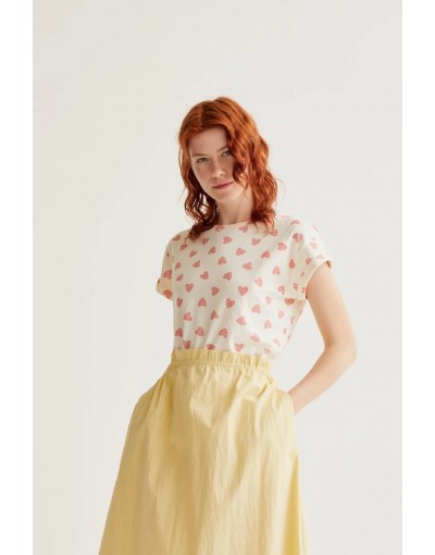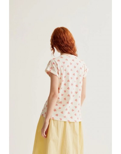 Camiseta de tejido 100% algodón con estampado ladybug red. Cuello redondo y manga corta. Hombro caído. La modelo mide 175 cm y lleva la talla S.