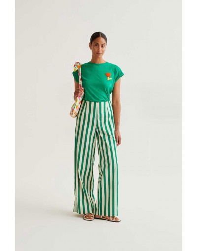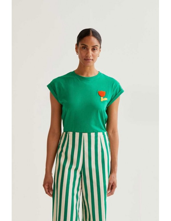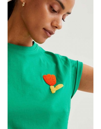 Camiseta Verde Manga Corta Tulipán Bordado Compañía Fantástica