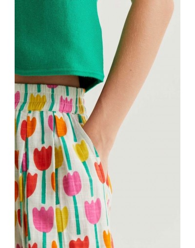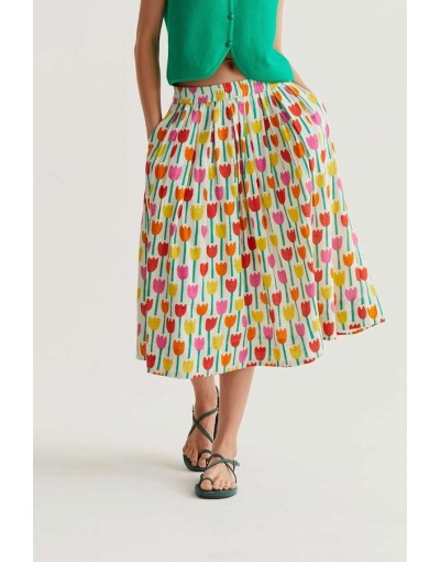Falda Midi Blanca Tulipanes Compañía Fantástica