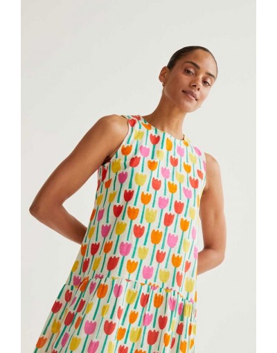 Vestido Corto Blanco Estampado Tulipanes Compañía Fantástica
